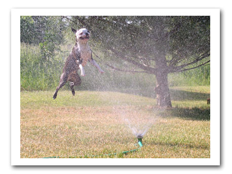 Rated: Cute Winning Caption: Why are you taking pictures when you should be saving me???!! Runner Up: OK, I promise not to make fun of Roxy's bright green life-preserver jacket ever again!
